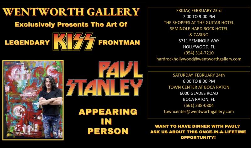 Kiss frontman Paul Stanley is a lot more than just a singer. He’s acted (played lead in a Canadian production of “Phantom Of The Opera”), written and co-written several Kiss hits including “Rock And Roll All Night” and “Black Diamond,” and yes, paints. On February 23, his first art show of 2024 opens at the Wentworth Gallery, Seminole Hard Rock Hotel & Casino, in Hollywood, Florida. The following day, he will also present his work at the Wentworth Gallery, Boca Raton Town Center Mall.